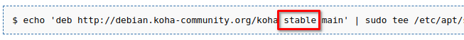 echo 'deb http://debian.koha-community.org/koha 19.11 main' | sudo tee /etc/apt/sources.list.d/koha.list