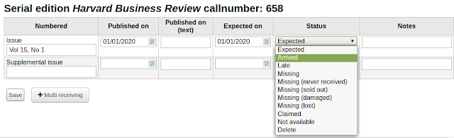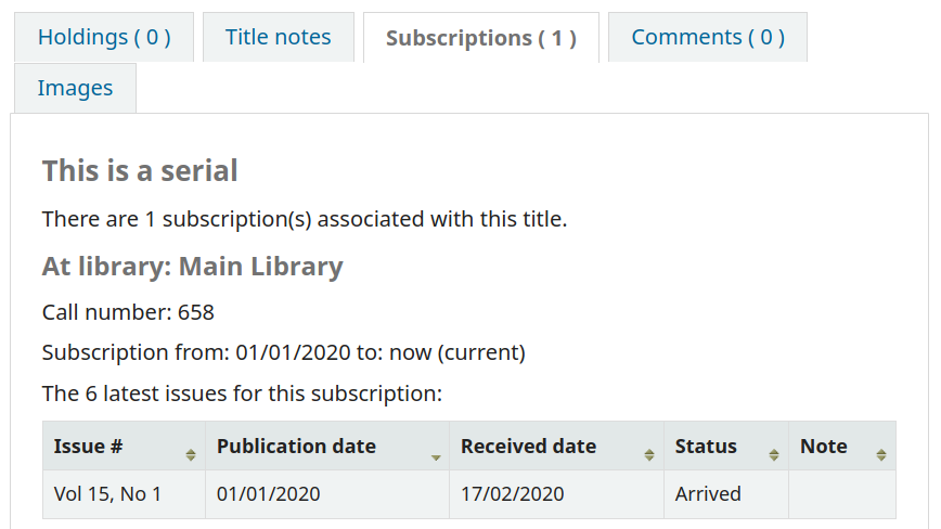 Serials module assist in managing subscription of journals, magazines, newspapers etc. Serials module is helpful to inventory and tracks periodicals. Library users can quickly know the availability of periodicals through OPAC. Create a subscription