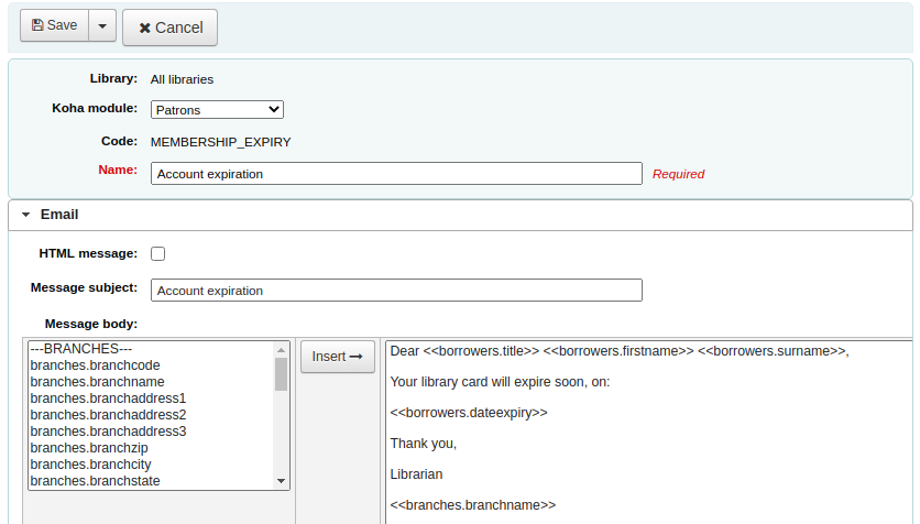 2. Customize the Discharge notice at Tools > Notices and slips. Search and find the Discharge notice. The content of the notice is blank. Visit the Notice Template site and copy the content. Edit and save the notice.