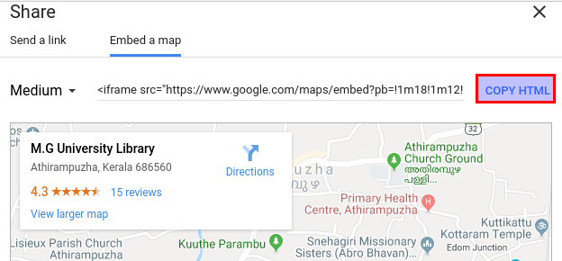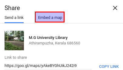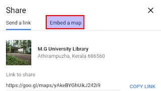 The location of the institute/library can be embedded on OPAC interface. Users strange to the campus can find the location of the library using Google Maps app in mobile. Follow the steps below to add the location on OPAC interface.