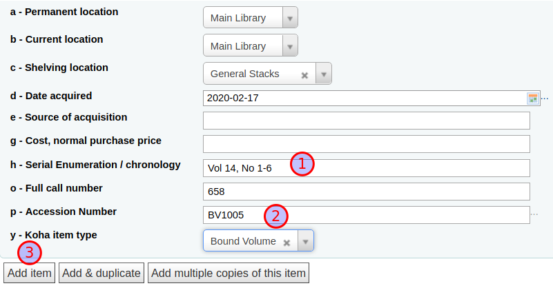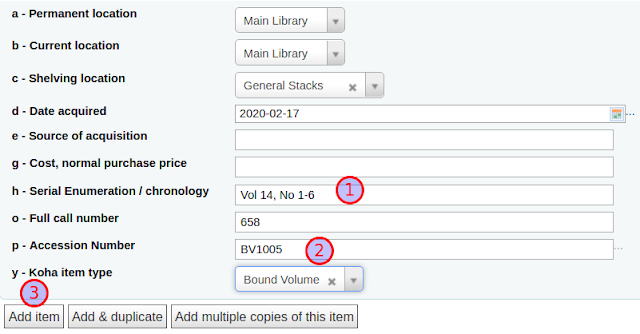 Enter the details of the journal including ISSN, title, publisher etc. Save the Biblio. No need to save the Item information.