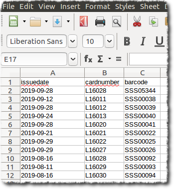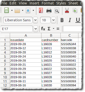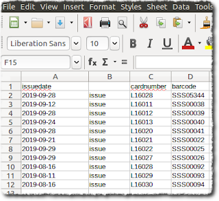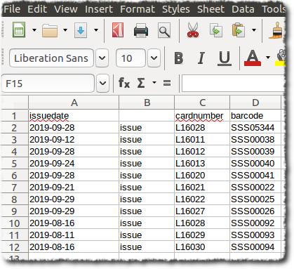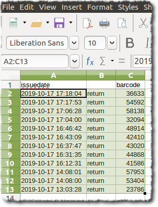 Open the All Book Checkout Out report in LibreOffice or any other spreadsheet application.